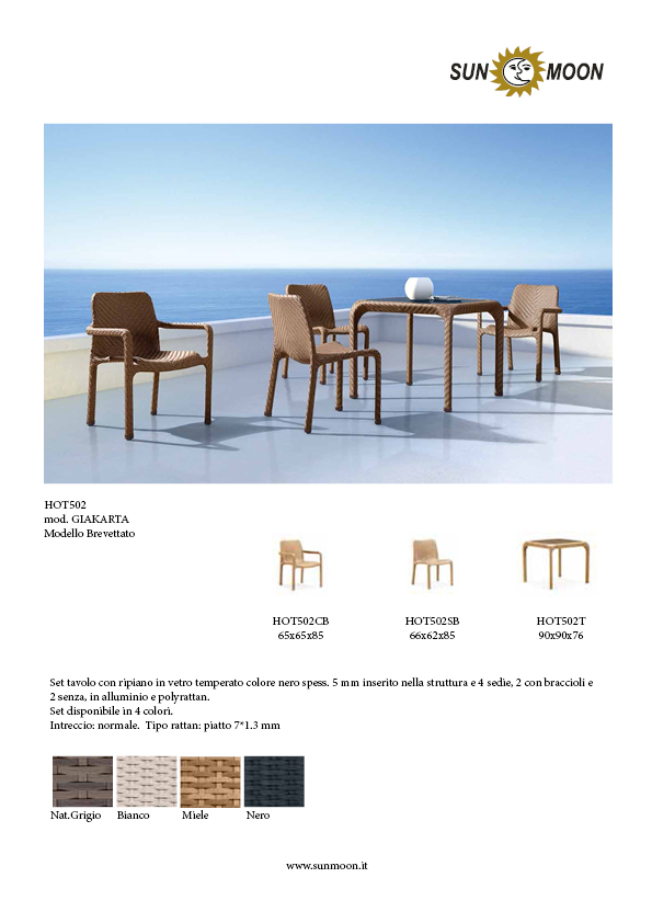 Set the table with thick tempered glass shelf. 5 mm. posted in structure and 4-2 chairs with armrests and aluminium-free 2 and polyrattan.