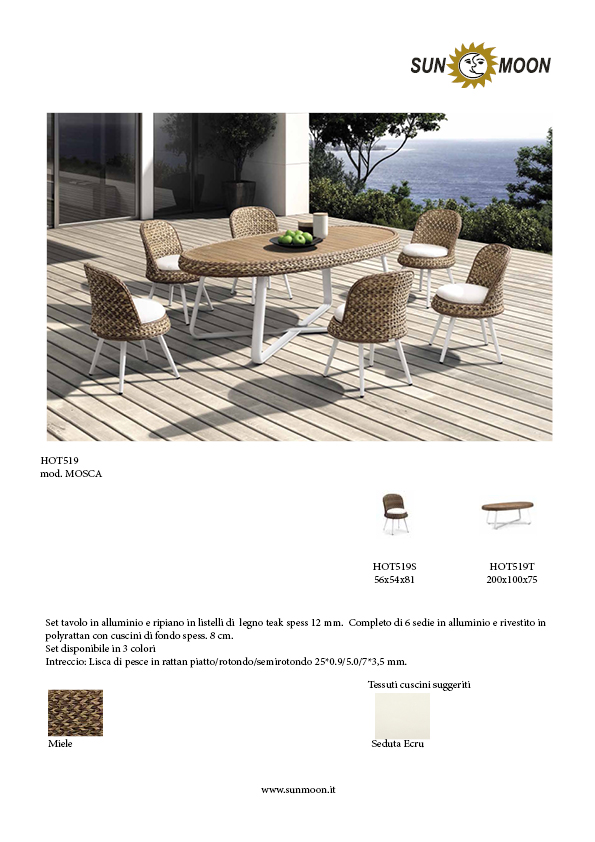 Aluminum table and shelf in teak wood thickness 12 mm. Complete with 6 chairs, with thick bottom cushions. 8 cm.