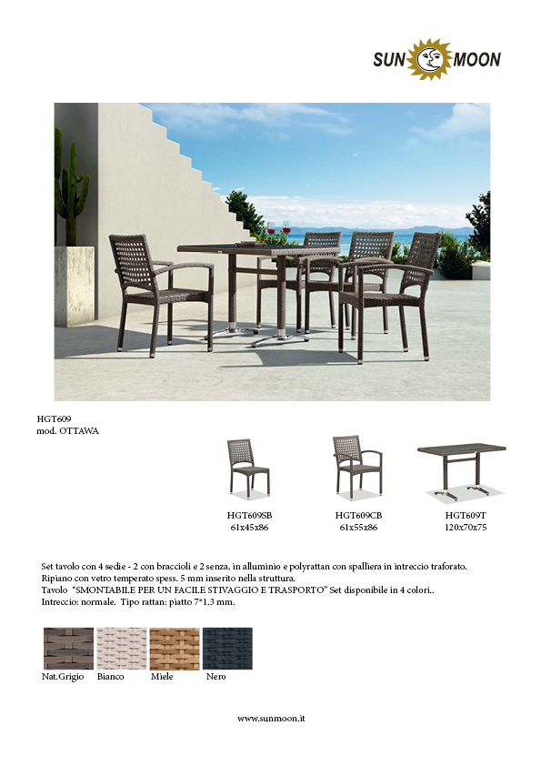 Table set with 4 chairs-with 2 arms and 2 without aluminium and polyrattan with back and lace weave. With thick tempered glass shelf. 5 mm inserted in.