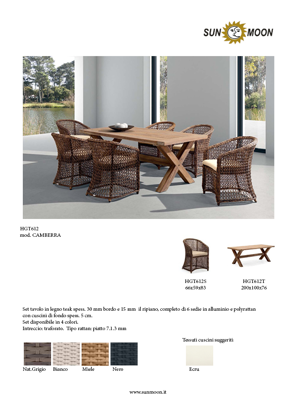 Teak wood table set thickness. 30 mm and 15 mm shelf, 6 full aluminum chairs and polyrattan with thick bottom cushions. 5 cm.