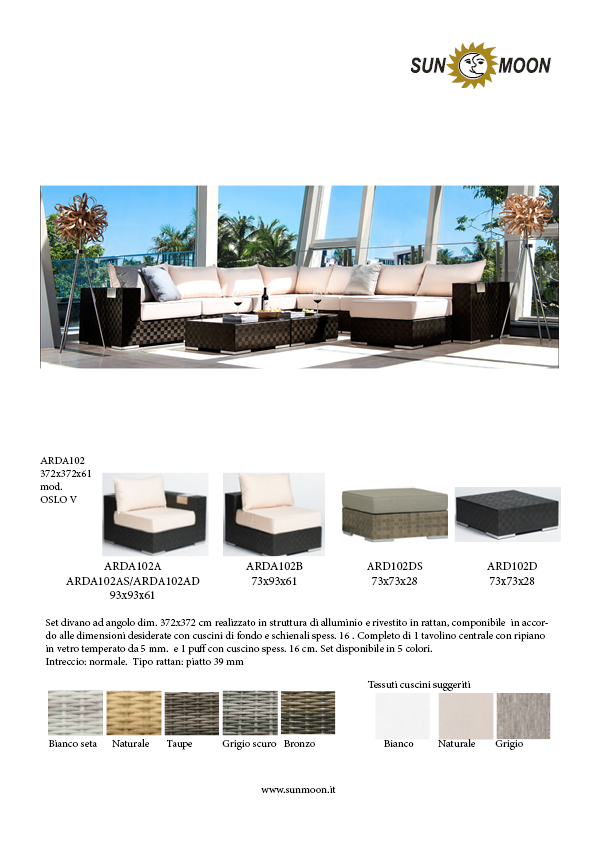 Dim corner sofa set. 372x372x61 '' fitted in accordance to the desired size with bottom cushions and backrests thick. 16 cm. 1 full coffee table with tempered glass top thickness. 5 mm. and puff with thick cushion 1. 16 cm.
