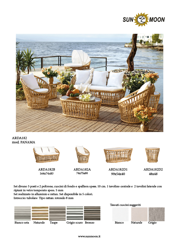 3 seater sofa set and 2 armchairs, cushions and back bottom thickness. 10 cm. 1 coffee table and 2 side tables with tempered glass shelves thickness. 5 mm