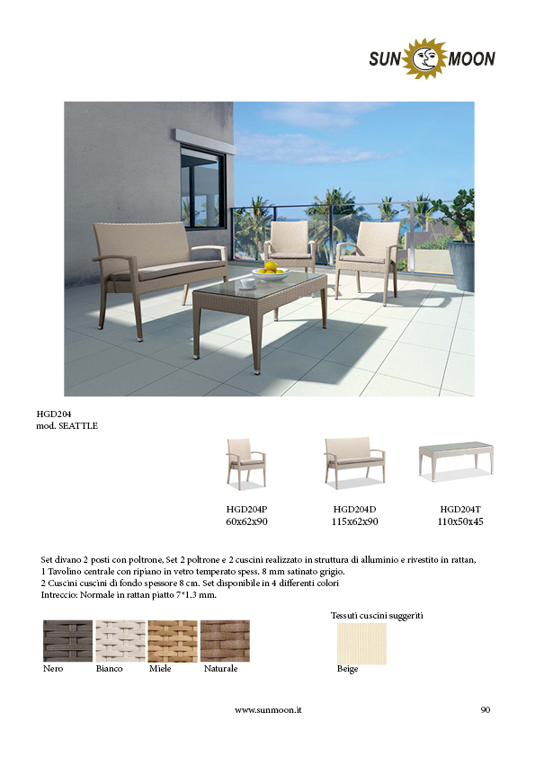 2 seater sofa set with armchairs, cushions and back bottom 5 cm thickness. 1 coffee table with tempered glass top thickness. 5 mm.